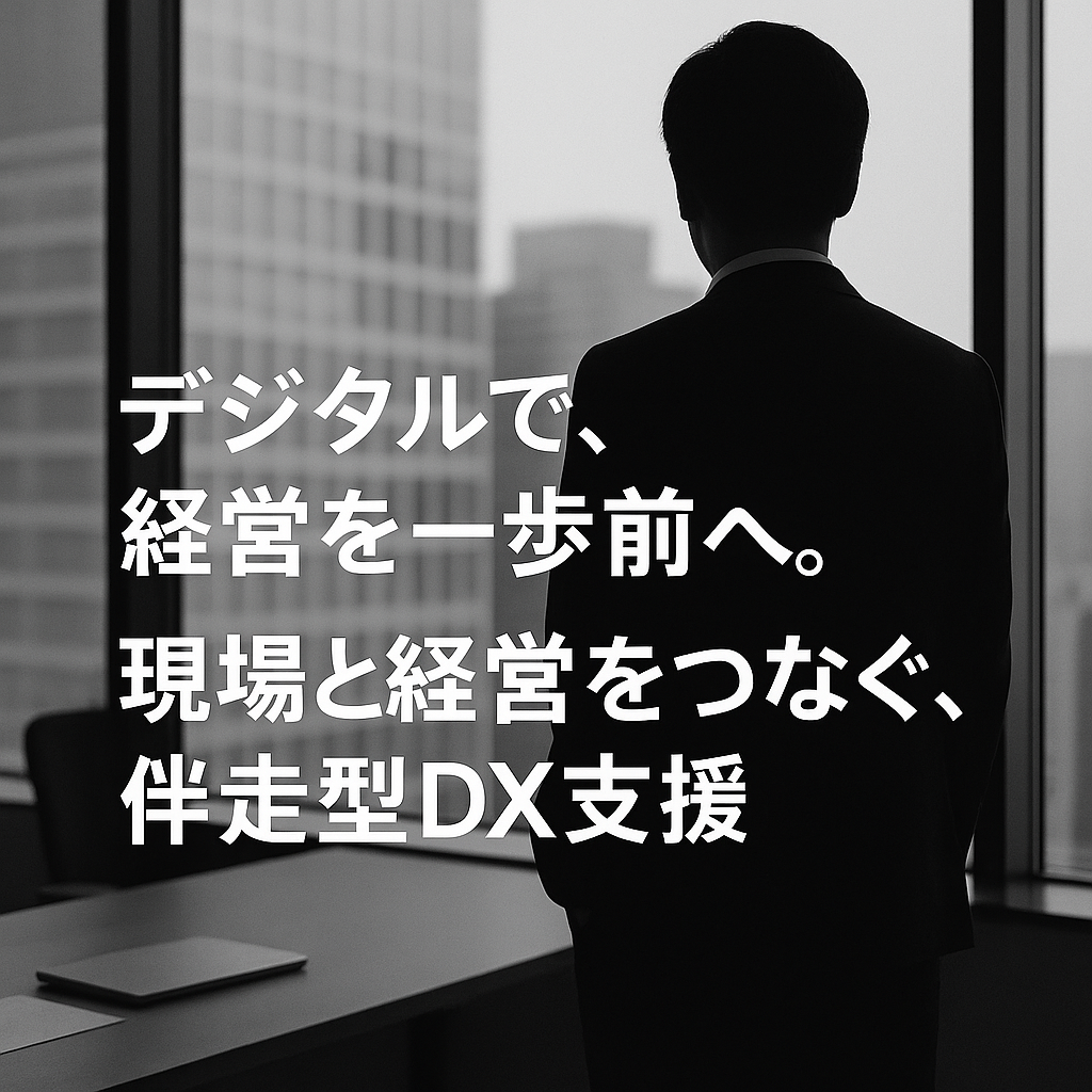 私たちは、現場と経営をつなぐ「伴走型DX支援」を行っています。